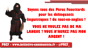 Pas un sou pour les délinquants linguistiques et autres collabos de la pub et du fric ! Clamons-leur ceci : « VOUS NE VOULEZ PAS DE MA LANGUE ? VOUS N’AUREZ PAS MON ARGENT ! ».