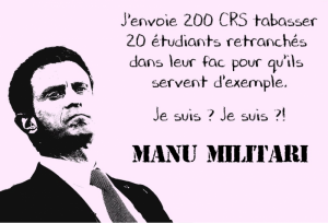 La violence, c’est donc cela la méthode du gouvernement valls, pour tenter de briser la mobilisation croissante d’une jeunesse qui ne fait qu’utiliser son droit constitutionnel à manifester. Mais s’en étonnera-t’ on vraiment de la part d’un gouvernement qui jettent en prison des syndicalistes qui ne font que défendre leur travail, de la part d’un gouvernement qui a plongé le pays sous Etat d’Urgence, de la part d’un gouvernement qui distribue la légion d’honneur au dictateur parmi les plus sanguinaires de la planète, qui soutien le régime d’Erdogan et le massacre des Kurdes en Turquie, qui soutien la junte fasciste mise en place par ses soins à Kiev, ce gouvernement qui fait alliance avec les pétro-monarchie les plus abjectes du Golfes pour semer la guerre et la désolation de la Lybie à la Syrie et les attentats en France… et on pourrait multiplier les exemples !