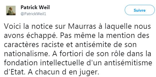 (Tout frais) 5 février 2018 : reprise d’une interview d’Olivier Dard, indiquant que “Maurras est représentatif de notre histoire” (Source)