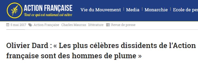 5 mai 2017 : reprise par l’Action française d’une interview d’Olivier Dard (Source)