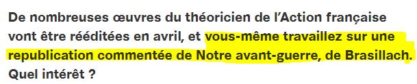 Mais bon, tout va bien, il travaille sur Brazillach maintenant, pour changer un peu (Source) :