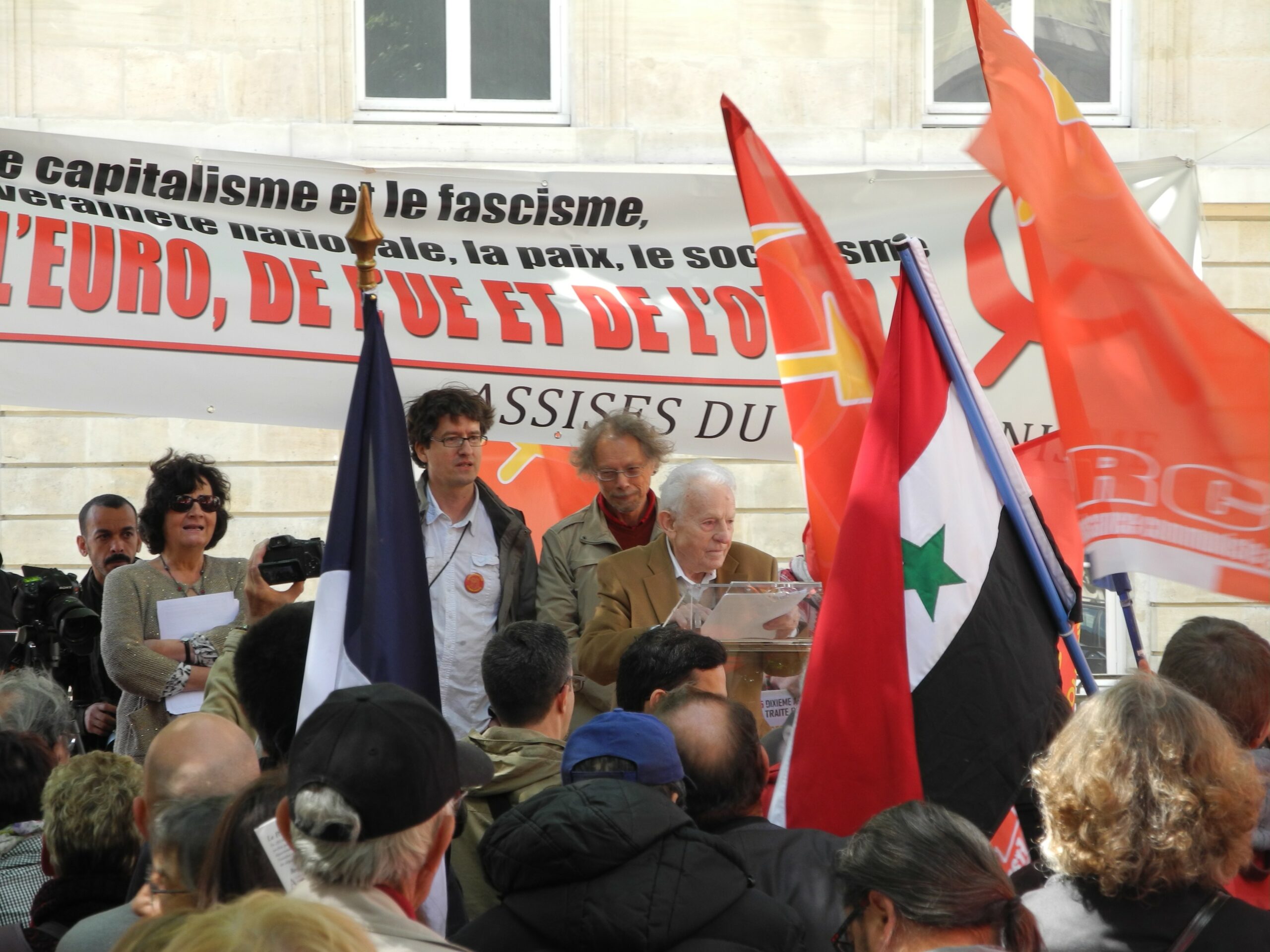 Ici le reportage photographique, puis la prise de parole des divers intervenants (lire ici le discours de Georges Gastaud, secrétaire national du PRCF). De multiples slogans ont été criés à pleins poumons par les participants, et notamment le très significatif « brisons les chaînes de l’Union européenne » !