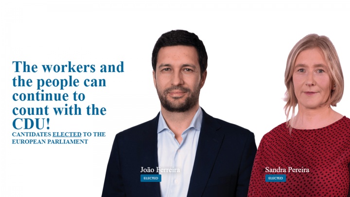 ![The provisional results of the elections for the European Parliament [in Portugal] confirm the election of two MEPs from the CDU](http://www.pcp.pt/sites/default/files/imagecache/720x405/images/genericas3/2019_joao_ferreira_sandra_pereira_en.jpg)