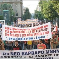 Nous avons le pouvoir de rejeter ce memorandum, les patrons et les directions des syndicats vendues pour demander immédiatement des mesures pour nous rétablirs, nous les travailleurs dans nos droits » Communiqué du PAME 13 juillet 2015