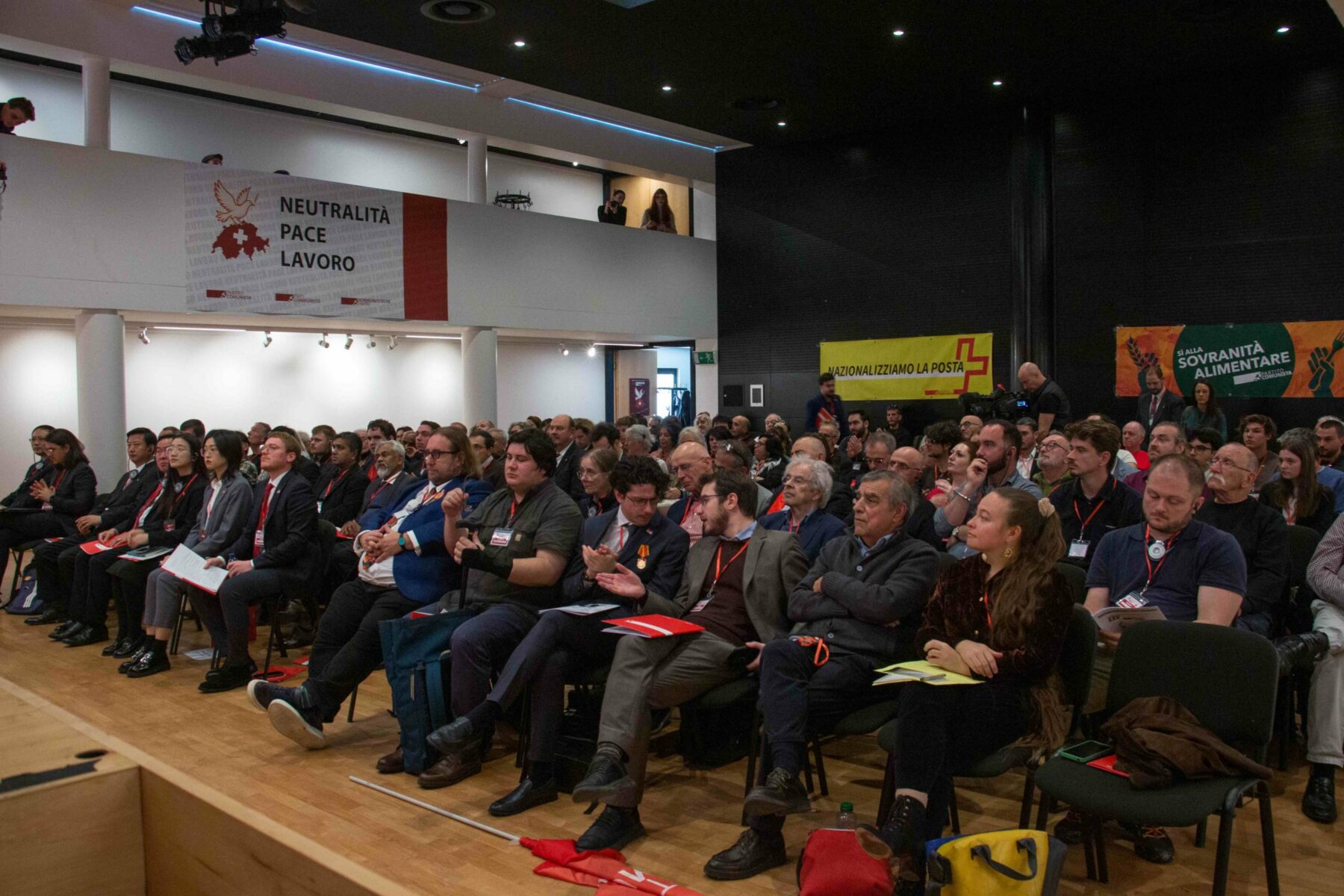 En présence de 120 délégués, le 25e Congrès du Parti communiste suisse s’est achevé avec entière satisfaction au Centre civique d’Arbedo. L’œuvre a duré deux jours et a été ouverte par l’adjoint communiste Lea Ferrari et par deux messages vidéo: le premier de l’artiste Moni Ovadia, antisioniste d’origine juive; et le deuxième des frères Kononovich, de jeunes antifascistes ukrainiens persécutés par le régime de Kiev.