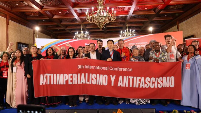 La deuxième journée de la conférence, tenue le 22 octobre sous le thème « Anti-impérialisme et Anti-fascisme », a rassemblé 44 partis et organisations politiques du monde entier. Une délégation du PRCF a participé à ces travaux. Les discussions ont porté sur les dangers croissants de guerre, en particulier en Asie de l’Est et dans les Caraïbes, et sur la nécessité de renforcer la solidarité internationale avec le gouvernement du Venezuela.