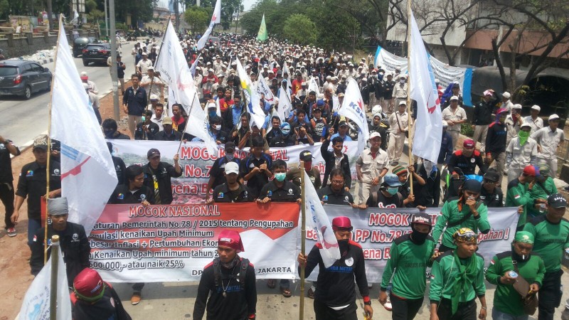 Du 24 au 27 novembre, des milliers de travailleurs de Union des travailleurs indonésiens (KSPI) ont lancé une grève générale nationale, refusant la réforme des salaires minimums proposée par le Président Joki Widodo qui appauvrirait les travailleurs (réglement 78/2015).