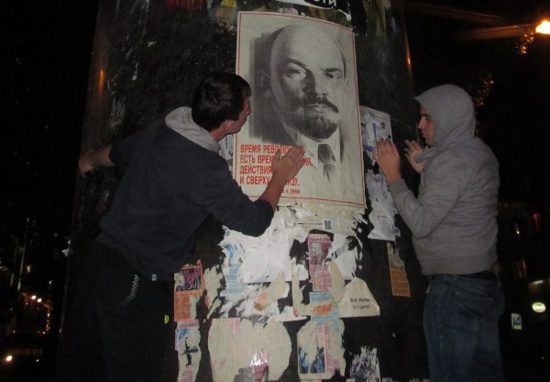 Encore récemment, alors que Kiev fêtait son « indépendance » (sic), les komsomols de Shevchenko (Kiev) et de Zaporozhye ont nettoyé la propagande nationaliste des murs de Kiev et posée sur le socle qui posait, avant les sombres événements de EuroMaïdan, une statut de Lénine. L’objectif était de rappeler aux nationalistes et aux habitants qu’ici c’est Lénine qui siège.