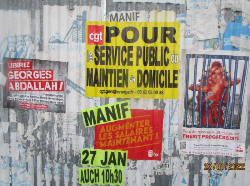 Les militants du PRCF se sont mobilisés ce mois de janvier notamment en participant au rassemblement devant la préfecture de Tarbes le 27 janvier du collectif 65 et surtout avec une campagne d’affichage les 13 et 27 janvier dans le Gers, notamment à Auch.