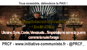 La décision dangereuse et menaçante de Trump et des USA, soutenue par l’OTAN, doit motiver chaque personne soucieuse de défendre la paix, de passer à l’action et de se mobiliser. Le PRCF avait proposé dès le mois de septembre, une grande manifestation pour la paix le 11 novembre : une manifestation qui est désormais lancée et organisée par un très large collectif de mouvements politiques et associatifs.