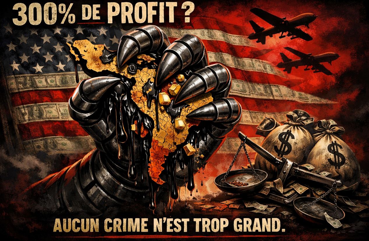 1. L’accumulation infinie et l’impérialisme moderne Marx souligne que le Capital, dès qu’il entrevoit un profit suffisant, « foule aux pieds toutes les lois humaines » et « n’est pas de crime qu’il n’ose commettre ». Cette dynamique se vérifie aujourd’hui dans la politique étrangère américaine : Trump, en déclarant que les États-Unis ont le droit de s’approprier les ressources de l’Amérique latine, des Caraïbes, voire du Groenland, ne fait qu’appliquer à l’échelle géopolitique la logique du capital. La doctrine Monroe, historiquement utilisée pour justifier l’ingérence américaine dans les affaires latino-américaines, est ainsi poussée à son paroxysme dans une nouvelle doctrine ouvertement hégémonique et exterministe, la doctrine Donroe : il ne s’agit plus seulement d’influence, mais de contrôle direct, de spoliation, des richesses naturelles (pétrole, minerais, terres rares, eau) sous la forme de guerre coloniale impérialiste directe.