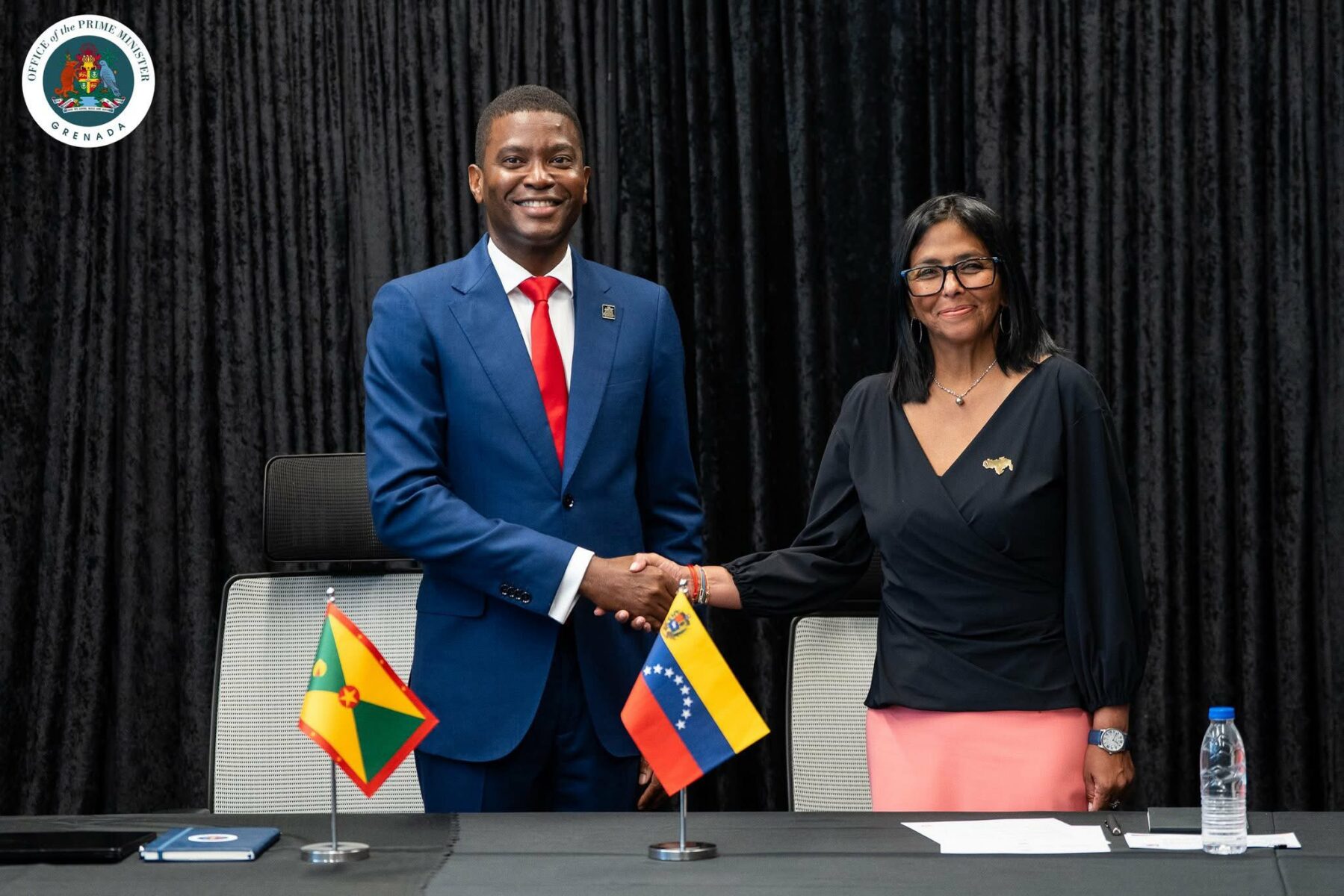 Pour sa première visite à l’étranger, le 9 avril 2026, Delcy Rodriguez, la présidente par intérim du Venezuela, s’est rendue à la Grenade pour s’entretenir avec le Premier ministre Dickon Mitchell, et explorer avec lui des secteurs de coopération, notamment pétroliers, éducatifs, transports aériens et maritimes. Rodriguez confirme ainsi l’orientation fondamentale de la diplomatie bolivarienne qui priorise les relations avec les nations des Caraïbes : « Nous avons fixé la date de lancement d’un vaste programme de coopération susceptible d’intégrer d’autres pays des Caraïbes. »