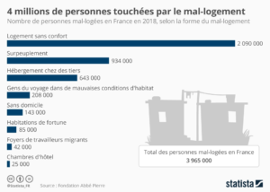4 millions de mal logés en France, plus de 200 000 sans abris !