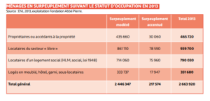 Selon la Fondation de l’ Abbé Pierre, Macron a davantage adopté des mesures qui dessinent « des orientations beaucoup plus inquiétantes : coupes dans les APL, ponction sur les HLM, attaques contre l’hébergement des personnes migrantes en situation irrégulière… », qu’il ne s’est préoccupé d’honorer sa promesse de campagne de « mettre enfin en œuvre une vraie politique de logement ».Le surpeuplement est un phénomène qui « refait surface, alors qu’il était en déclin depuis plusieurs décennies », précise la Fondation.Cette situation a des conséquences graves : « dégradation du logement, l’augmentation des risques domestiques, l’impact sur la santé physique et mentale, les difficultés rencontrées dans le développement et la scolarité des enfants », sans oublier les « tensions et violences intra-familiales… ».