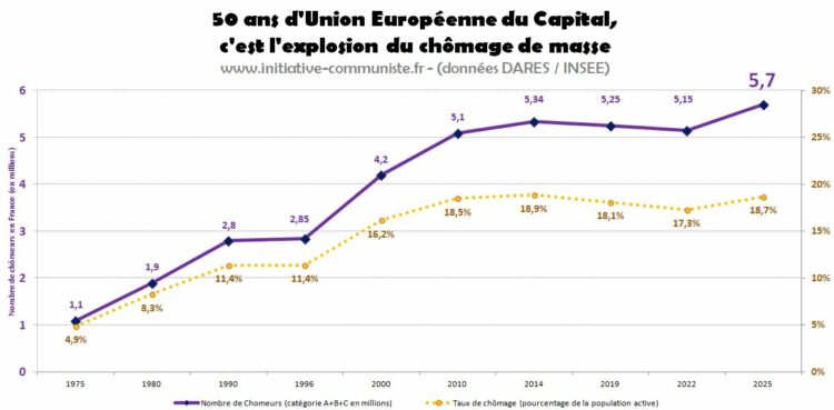 Le 31 décembre, c’est le moment de propagande traditionnel des vœux de l’Élysée. À Initiative Communiste, on préfère la vérité des prix et le jugement des faits. Le bilan synthétique et factuel, de l’évolution des chiffres officiels du chômage en France entre décembre 2024 et décembre 2025, avec les statistiques INSEE (taux de chômage au … Lire la suite de +8% : la politique de Macron et de l’Union européenne, soutenue par le RN de Le Pen Bardella, c’est l’augmentation du chômage. 6.5 millions de privés d’emploi en France ! [ #Voeux #Macron20h ]