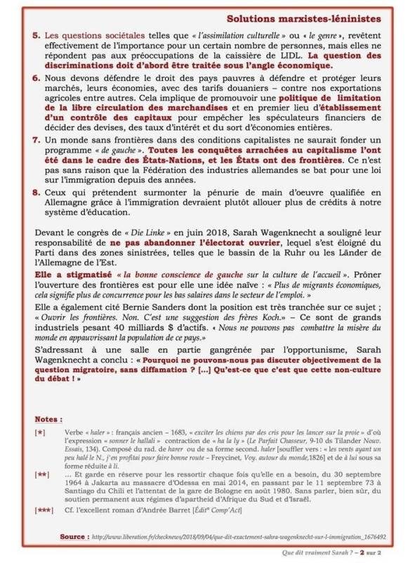 Alors pourquoi ce travestissement et ces mensonges(Voir ci-après les déclarations de Sahra Wagenknecht elle-même) ?
