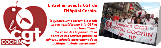 BERNARD GIUSTI : Notre confédé CGT vient d’élire avec éclat Philippe Martinez, et je dois dire que la CGT Cochin s’en réjouit. Nous espérons que cela permettra à la CGT de sortir d’une longue période marquée par le réformisme (ce qui a conduit entre autre à une baisse sensible des syndiqués au niveau national). Mais je ne peux pas parler à la place de nos dirigeants nationaux. Ce que je crois profondément, c’est que c’est avant tout sur le terrain que les bras de fer, y compris nationaux, se gagnent. Les dirigeants nationaux, quels qu’ils soient, ne pourront rien faire sans les bases si ces bases se renforcent dans la lutte des classes. Pour cela il faut appliquer les vieilles méthodes du syndicalisme (celles de Krasucki) qui certes n’ont pas un goût de « modernité » ( !) mais sont très efficaces. Ce que j’exposais plus haut en fait partie, et notre syndicat CGT Cochin ne cesse d’augmenter le nombre de ses syndiqués. Quelle que soit la bonne volonté de Philippe Martinez, rien ne sera possible sans le soutien massif des travailleurs. Une fois encore, les patrons le savent, eux : seuls les rapports de force comptent. Tant qu’il n’y aura pas de mobilisation massive (et ça c’est avant le travail de chaque syndicat de terrain) le patronat continuera à mettre en place ses sbires, les Hollande, les Sarko, les Le Pen…, et à imposer sa dictature.