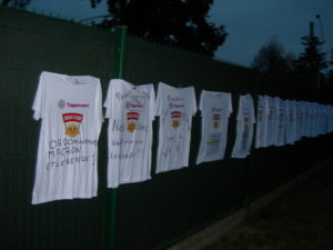 En réalité la position du C.E CGT, ne semblait pas correspondre avec la colère des salariés, comme l’attestaient les slogans écrits sur les maillots accrochés à la grille de l’usine.