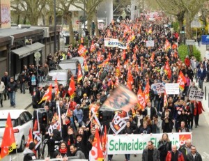160 000 manifestants à Paris , 120 000 manifestants à Marseille, 25 000 au Havre, 15 000 à Rouen, 100 000 selon la police à Toulouse, 30 000 à Grenoble, 30 000 manifestants sous une pluie battante à Bordeaux, 30 000 à Lyon, 10 000 personnes à Rennes, des dizaines de milliers de manifestants à Lille, 10 000 à Nice, 30 000 à Nantes et 5 000 à Saint Nazaire, 8 000 à Avignon, 12 000 à Montpellier, 15 000 à Caen, 5000 à Albi, 2500 à Bourgoin, 6500 à Angoulème, 30 000 à Clermont Ferrand , 10 000 à Saint Etienne, 15 000 au Mans 2500 manifestants à Boulogne …. Une mobilisation rassemblant sans aucun doute plus de deux fois plus de manifestants que le 9 mars.