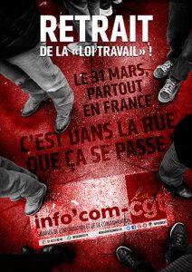 Les travailleurs de l’information et des médias sont eux aussi mobilisés pour le retrait de la loi travail. Voici la série d’affiches qu’ils ont diffusée depuis début mars imposant à plusieurs reprise la voix de la classe des travailleurs : contre la répression et les violences policières, pour la démocratie, pour les droits des travailleurs.