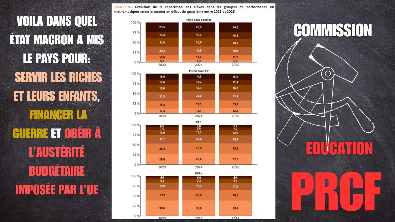 Pour pouvoir reconstruire l’école républicaine telle que l’avaient pensaient Condorcet et Monge il est urgent de sortir de l’UE de l’euro de l’OTAN et du capitalisme, d’autant qu’au moment où sort cette enquête, le chef de d’état major des armées Mandon déclarent que nos enfants doivent se préparer à aller mourir à la guerre pour permettre l’expansion impérialiste de l’UE à l’Est (avec le cortège de délocalisation que cela impliquera si tout cela ne finit pas avant dans un hiver nucléaire définitif.