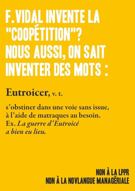 La dimension européenne des contre-réformes actuelles ne doit pas non plus être sous-estimée, pour les retraites comme pour l’université et la recherche. La destruction des services publics (avec la mise en extinction du statut de fonctionnaire), leur mise en concurrence et leur asservissement direct aux intérêts capitalistes figure noir sur blanc dans les traités de l’Union Européenne, pour l’enseignement supérieur comme pour l’énergie, les télécommunications ou les chemins de fer. La sujétion volontaire des « élites » européennes à l’impérialisme états-unien constitue une constante de la « construction » européenne ; le système fait de précarité et d’inégalité qui prévaut dans les universités états-uniennes a déjà été exporté dans de nombreux pays de l’U.E., notamment dans la puissance dominante de celle-ci, l’Allemagne : il faudrait de toute urgence réformer l’exception française, nous dit l’idéologie dominante… aussi pour se conformer aux diktats ultra-« libéraux » de l’UE. Cette dernière a également, en institutionnalisant à grande échelle le « dumping » social, organisé la désindustrialisation de notre pays (y compris dans des secteurs de pointe liés à la recherche), alors que la République Fédérale d’Allemagne, devenue un pays de bas salaires (mais de hauts profits…) et d’inégalités massives (il n’y a plus le contre-modèle socialiste de la République Démocratique Allemande pour obliger l’ouest à accorder quelques concessions sociales !) conserve globalement son potentiel industriel, malgré la rude concurrence asiatique. Après l' »harmonisation européenne » du LMD (Licence-Master-Doctorat), c’est-à-dire la refonte du cursus universitaire sur le modèle anglo-saxon, est venu le temps de la recherche « publique » sur appels à projet, la « concurrence libre et non faussée » (principe fondamental de l’UE) entre personnels (avec son cortège de précarité), que la LPPR voudrait généraliser à une échelle beaucoup plus vaste que ce que les contre-réformes précédentes avaient déjà permis. Et pour les étudiant(e)s un système à plusieurs vitesses, avec des droits d’inscription appelés à exploser (pour se conformer aux « standards » européens et internationaux…), comme Macron a déjà voulu le mettre en place, de façon purement xénophobe (il n’y a pas que Madame Le Pen…) en triplant les frais d’inscription pour les étrangers hors UE…