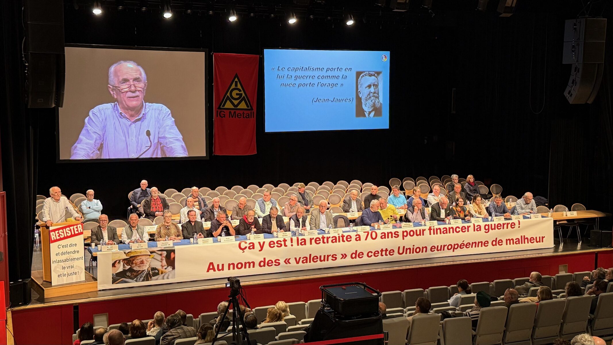 Je termine en rappelant toujours que nous les travailleurs frontaliers sommes les pionniers de l’Europe mais pas de cette Union européenne du capital, de la spéculation, de la corruption, des délocalisations, des paradis fiscaux, de la guerre, oui de la guerre, nous ne voulons pas de dette Europe qui veut nous faire travailler jusqu’au tombeau ; de cette Europe qui par la voix de Mario Draghi dit : « le modèle social européen est mort. »