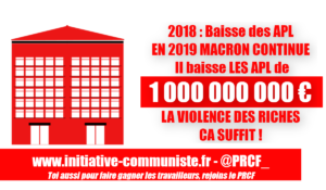 Alors que l’affaire Benalla démasque un peu plus la nature du régime Macron, ce dernier se lance dans une nouvelle attaque en règle contre les jeunes, les retraités, les plus pauvres des Français. Il y a un an, une des premières décisions de Macron a été de baisser les APL provocant un formidable tollé, prenant aux pauvres pour donner aux riches. Car dans le même temps, celui qui prétendait qu’il n’y avait pas d’argent dans les caisses de l’Etat pour permettre d’aider les jeunes, les retraités, les plus pauvres à se loger, supprimer l’impôt sur la fortune (ISF) distribuant des milliards aux plus grandes fortunes de France.