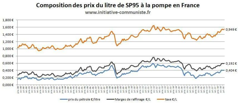 www.initiative-communiste.fr le journal du PRCF a enquêté sur les causes de cette augmentation énorme des prix de l’essence et du diesel. Des causes qui ont plus à voir avec la décision du régime Macron d’augmenter les impôts visant les travailleurs pour réduire de plusieurs dizaines de milliards d’euros ceux concernant les millionnaires et leurs multinationales.Une augmentation qui va s’aggraver puisque le régime Macron a décider d’augmenter encore plus les taxes et qu’il soutient et se soumet à la guerre économique contre l’Iran et le Venezuela qui va gonfler les prix du pétrole.