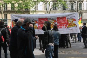 Une bonne quinzaine de camarades du PRCF étaient présents à la manifestation du 1er mai. Nous avions pris un emplacement juste avant le rond-point de la Bastille, ce qui nous a permis d’afficher trois banderoles en faveur du Frexit progressiste et 9 jeux de drapeaux aux feux/réverbères/embouchures de métro (à chaque fois, nous croisons un drapeau PRCF et un drapeau tricolore).