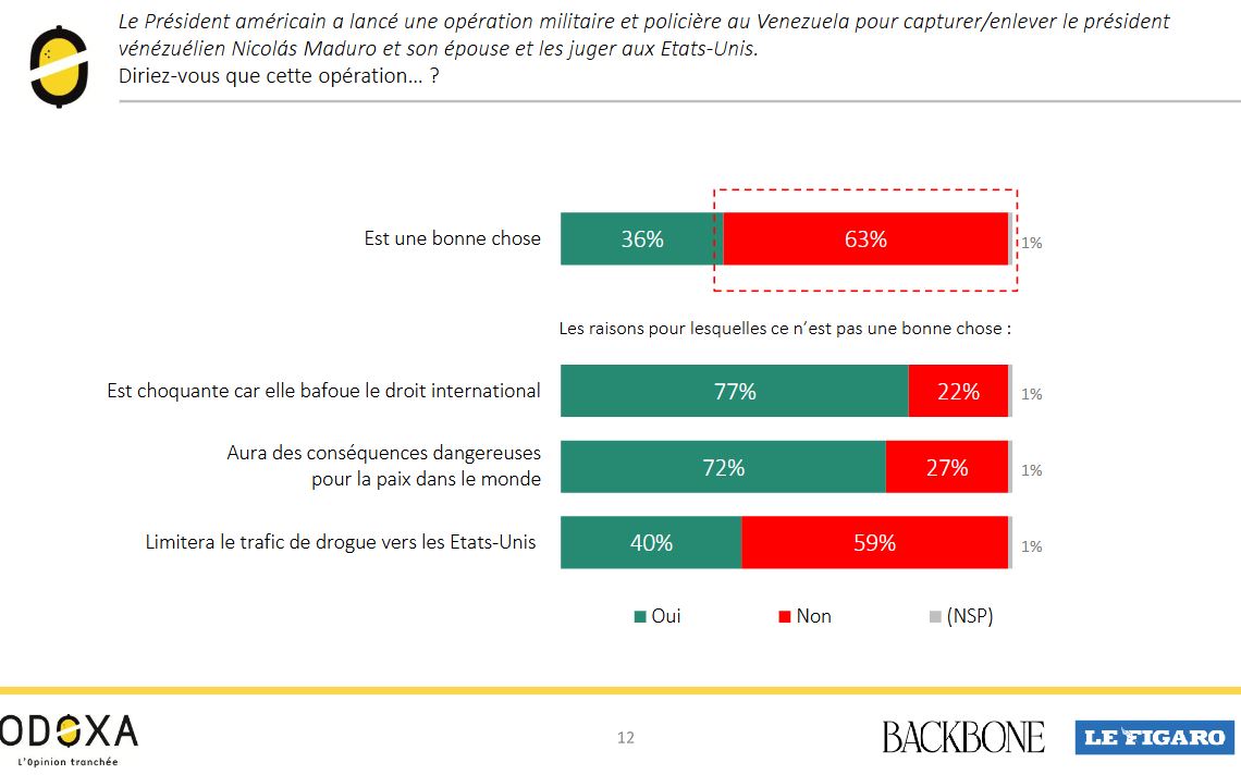 Selon un sondage Odoxa‑Backbone pour Le Figaro, 63 % des Français désapprouvent l’opération américaine au Venezuela ayant conduit à la capture de Nicolas Maduro.