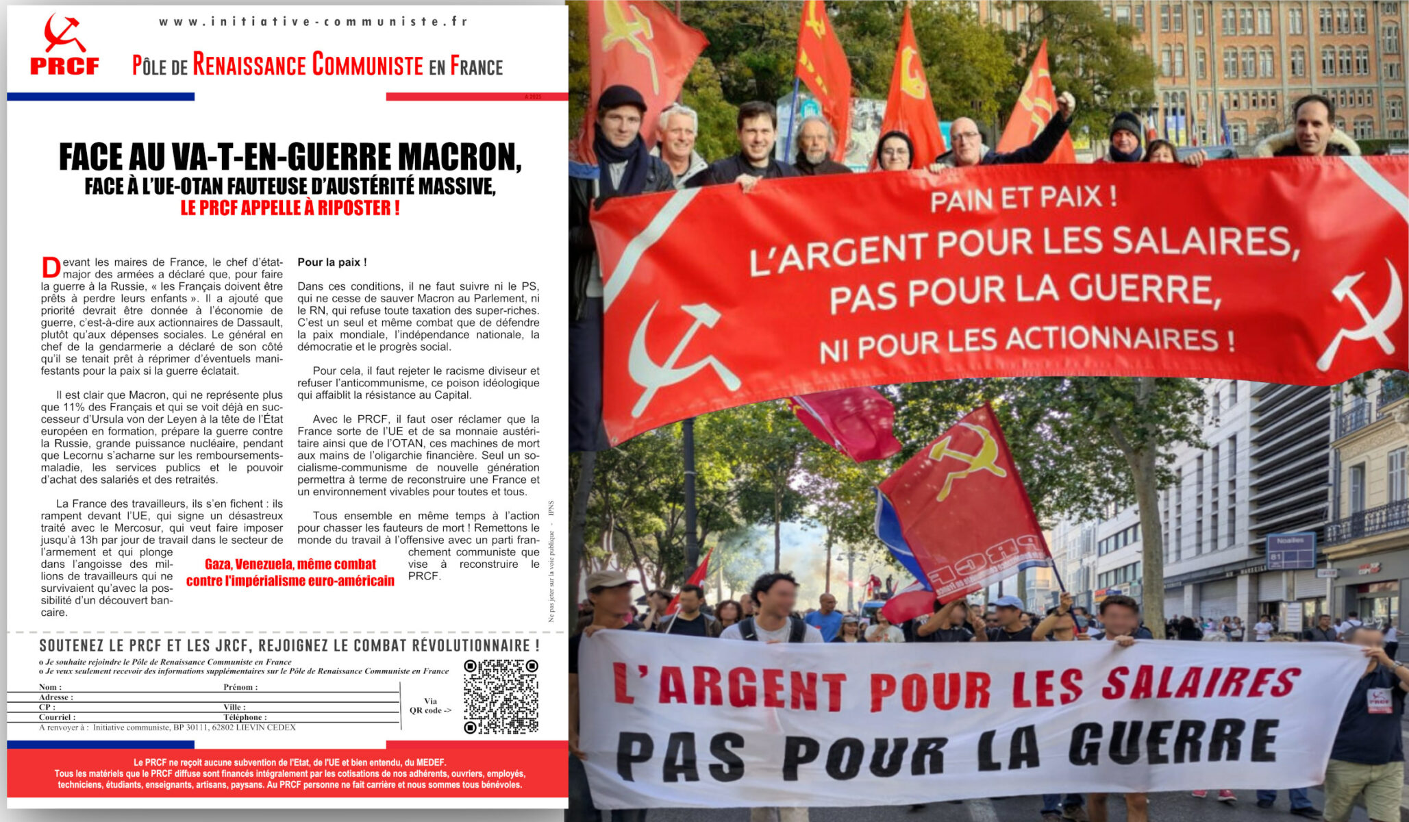 Il est clair que Macron, qui ne représente plus que 11% des Français et qui se voit déjà en successeur d’Ursula von der Leyen à la tête de l’État européen en formation, prépare la guerre contre la Russie, grande puissance nucléaire, pendant que Lecornu s’acharne sur les remboursements-maladie, les services publics et le pouvoir d’achat des salariés et des retraités.