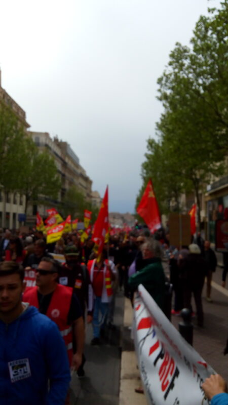 Ce 14 avril le vieux port de Marseille débordait de monde de même que la Canebière. Près de 60 000 personnes d’après la CGT – un cortège dense et combatif mêlant travailleurs du public et du privé, jeunes et retraités, organisations et partis politiques et associations ainsi que les principaux syndicats se sont réunis, tous ensemble, en même temps et au même endroit pour faire converger leurs luttes pour stopper la casse du pays et des conquis sociaux par Macron UE MEDEF.