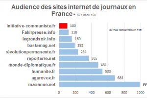 Édité dix fois par an Initiative communiste, un magazine de 24 pages-couleur traitant des luttes sociales, de l’international, de la vie politique française, de la renaissance communiste, de la théorie marxiste, de l’histoire, de la culture, tout en donnant régulièrement la parole à ses lecteurs ? IC un mensuel paraissant à date fixe qui vient de lancer en 2016 une nouvelle formule avec encore plus de pages !- Anime un site internet qui est classé parmi les tous premiers sites politico-médiatique de la gauche et parmi les 30 premiers sites politiques en France. Et dont l’audience ne cesse de croitre malgré la censure du système médiatique, s’imposant comme l’un des premiers sites communistes en France. Un site internet 100% gratuit mettant à disposition une archive de plus de 3000 articles exclusifs et qui publie chaque semaine près de 30 articles originaux sur les sujets les plus divers. Site internet s’appuyant sur une chaine Youtube et une chaine Periscope, permettant la diffusion en direct par exemple des conférences, débats et meetings du stand du PRCF à la fête de l’Huma. Site internet largement relayé sur les réseaux sociaux grâce aux pages facebook du PRCF (et des ses ARC) et à un compte twitter (@PRCF_) très actifs, notamment par l’entremise de ses jeunes militants des JRCF ?
