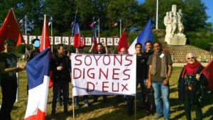Dans le défilé parti du rond point Fernand Grenier ou un hommage lui a été rendu (en dehors de la carrière donc..) il n’y avait qu’une seule banderole face aux drapeaux des organisations d’anciens combattants, une seule banderole significative du respect que l’on doit aux résistants fusillés mais aussi à ceux qui sont encore vivants, sur laquelle était écrit « SOYONS DIGNES D’EUX »