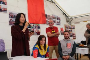 - un débat de la jeunesse communiste, un meeting international réunissant des communistes des 5 continents, un débat politique et syndical rassemblant de la France Insoumise à la Gauche Républicaine, en passant par le MS21, la CGT énergie Paris, le Front Syndical de Classe, et bien sûr le PRCF, un débat autour de l’actualité de la Révolution pour ce 100è anniversaire de la révolution d’octobre, avec un plateau impressionnant d’historiens et philosophes (Georges Gastaud, Aymeric Monville, Annie Lacroix Riz, Roger Keeran, Stéphane Sirot, Jacques Pauwels) d’Europe et d’outre- atlantique, la venue de délégations, de Corée, d’une responsable du PSUV et d’une députée de l’ANC ainsi que l’ambassadeur du Venezuela…